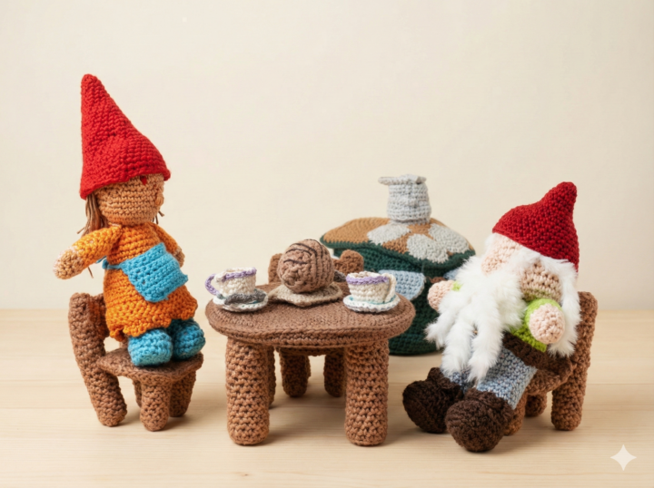 Een betoverend poppenhuis met gehaakte meubels & kabouterfamilie – unieke eenmalige oplage! 🌟🏡🧶🧙♂️